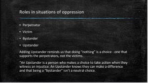 To prepare, I read three articles to see how others have researched this question. While the educational settings were different from mine (a college classroom, a summer seminar and a public school), all used familiar instructional methods. They used stories and role models to inspire their students and generate discussion about what it means to be an Upstander. While these articles did not clarify a methodology, it was reassuring to see their successes.