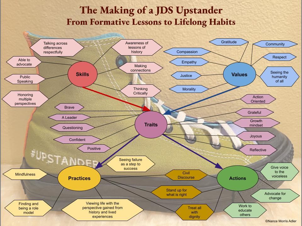 As part of my course work in the Mandel Teacher Educator Institute (MTEI)/Hebrew Union College Graduate Certificate in Educational Leadership, I was asked to research my own practice as a teacher. I immediately knew my research topic! Does learning in my classroom empower young people to be Upstanders? If so, what experiences in my Jewish Studies classes and, at JDS in general, contribute to this? How does a JDS education show up in our alumni and their life choices?