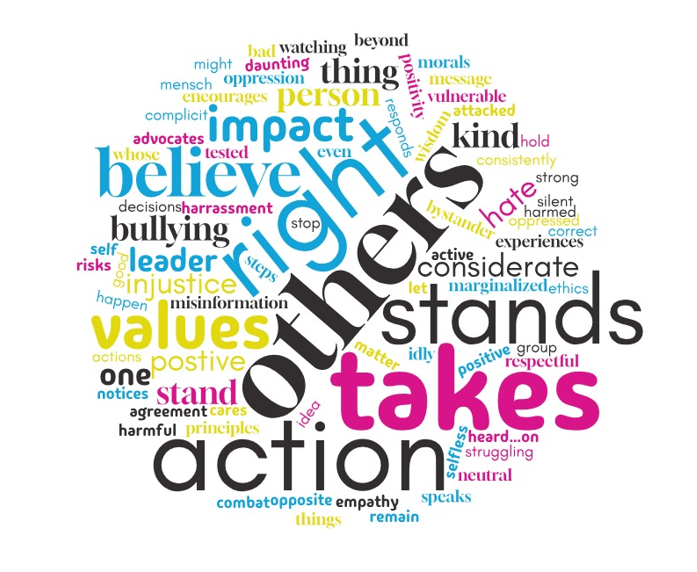 Seeing the impact of my teaching over the past 18 years has been humbling and deeply rewarding. I presented my work to my fellow MTEI Cohort 11 members in October, and was moved to tears by their responses to my work. One comment that really stuck with me was about how “vulnerable” I was able to be in asking these questions. This connects to the values of curiosity and honesty I included in my Structured Ethical Reflection and really being open to whatever the answers might have been to my questions. Doing this practitioner action research project provided me with data about the impact of my teaching, and enabled me to visualize the outcomes of what I teach in a way that enables me to strengthen my own teaching, as well as create workshops to educate other teachers. I shared my findings with the faculty at my own school during our fall orientation week and am working to help other teachers bring more of these valuable lessons into their classrooms. My school will be using my findings to help create a “Portrait of a JDS Graduate” that incorporates this real world data that shows what our graduates already look like. Having transferable and replicable outcomes that can be shared with other teachers allows me to help others create more Upstanders…something our world sorely needs.